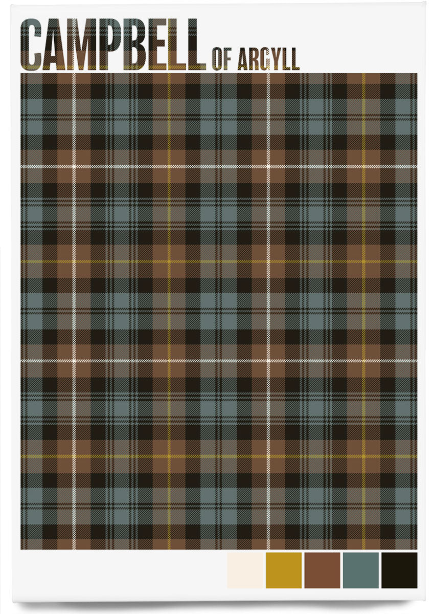This is the weathered variant of Campbell of Argyll tartan, designed by Lochcarron in 1822. It is Scottish Register of Tartans #513 and is also known as Campbell of Argyll (no guards).