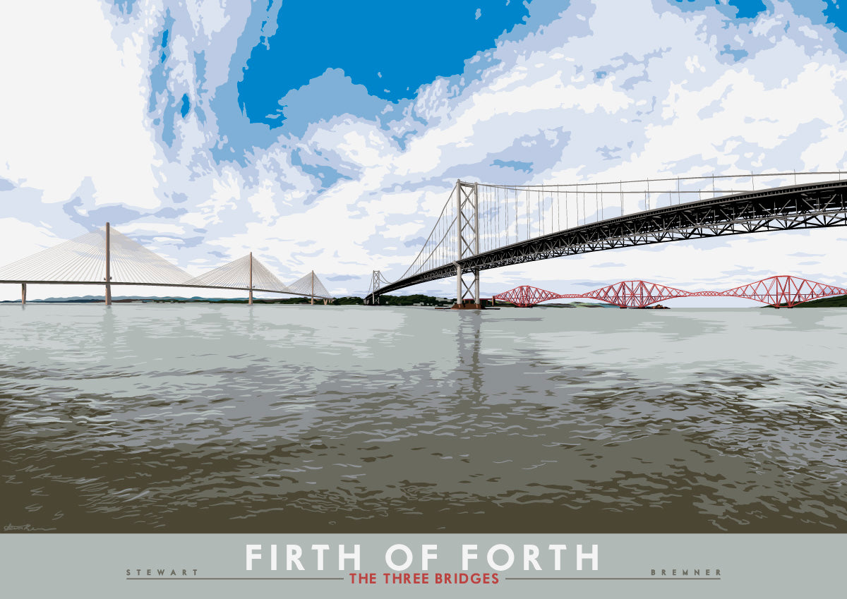 The Forth’s three great bridges, as seen from Port Edgar. Oldest of the three, the world-famous Forth Bridge is a UNESCO World Heritage Site. It opened in 1890 and is still being used or its original purpose as a rail bridge. The same cannot be said for the Forth Road Bridge, most of whose traffic now travels on the 2017 Queensferry Crossing.