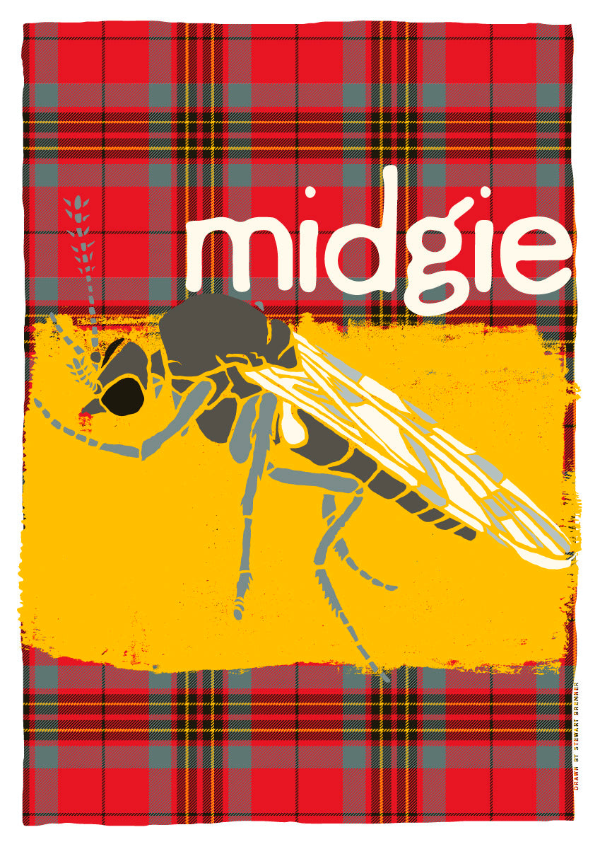 The curse o the heilans! Neither rain or daurk will hinner them. Fae ware throu simmer, yon oot in the landward an bi ony watter are likely tae get but mony times bi thir wee pests. Thay’r daft for bluid. Awmaist naething kin stop them. In Inglis thay’r cryed ‘highland midge.’