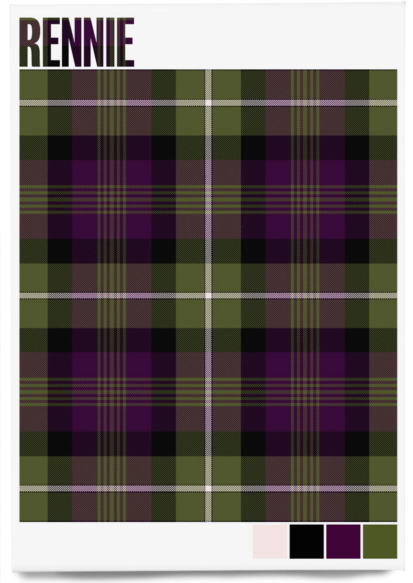 This is the modern variant of Rennie tartan, designed by Peter MacDonald in the 1980s. It is Scottish Register of Tartans #3501.