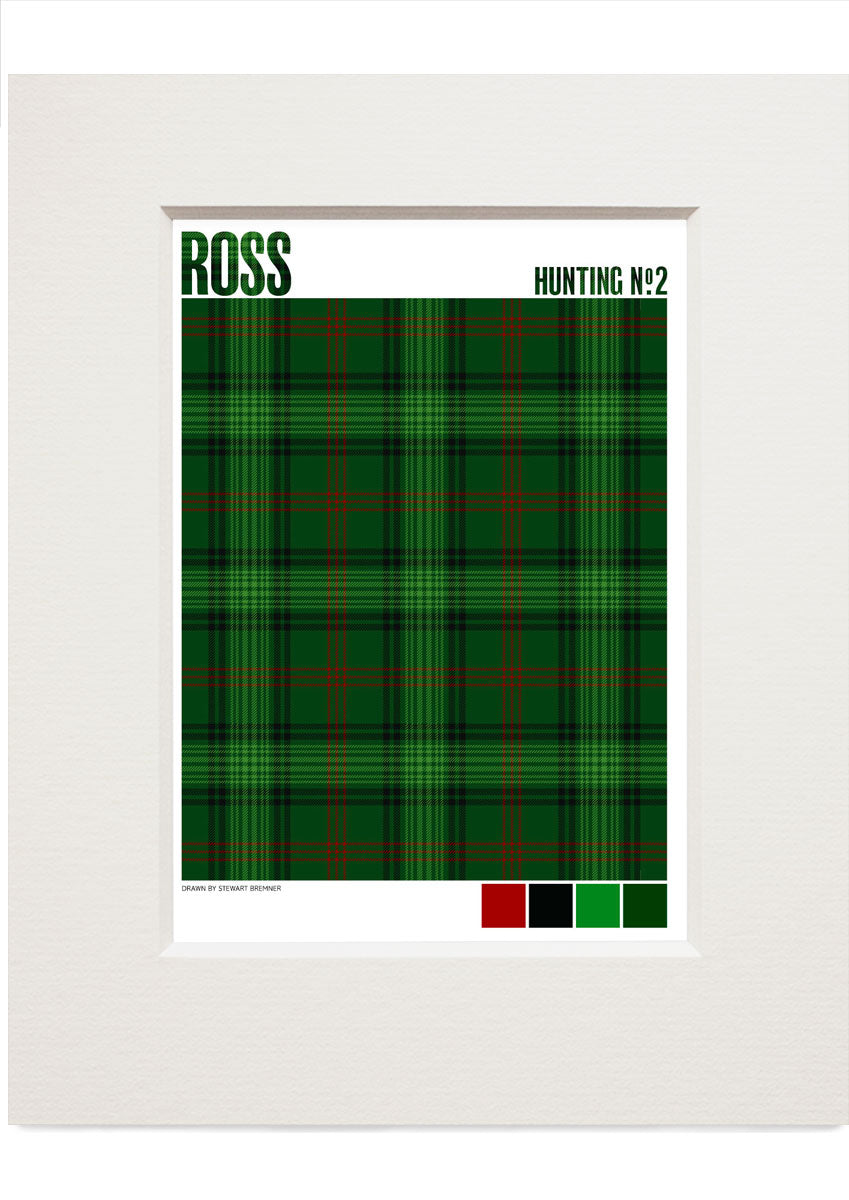 Composed primarily of a large section of the tartan, the pattern will repeat depending on the size of the sett. Each line of thread is carefully drawn to replicate the tartan and is shown alongside a block palette of the colours used.
