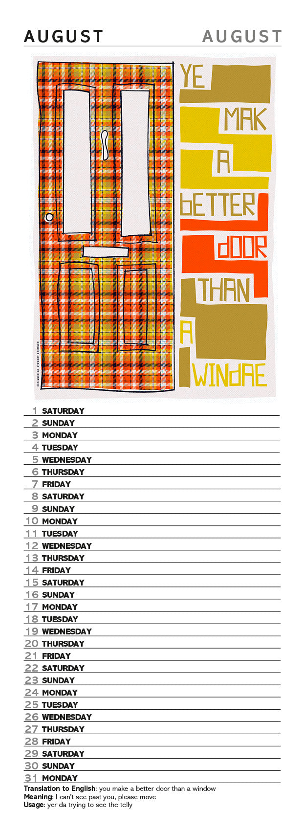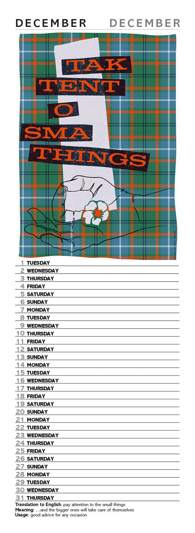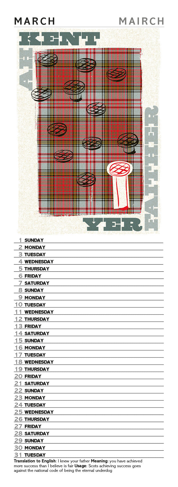 Scots Sayings on tartan – 2026 slimline calendar