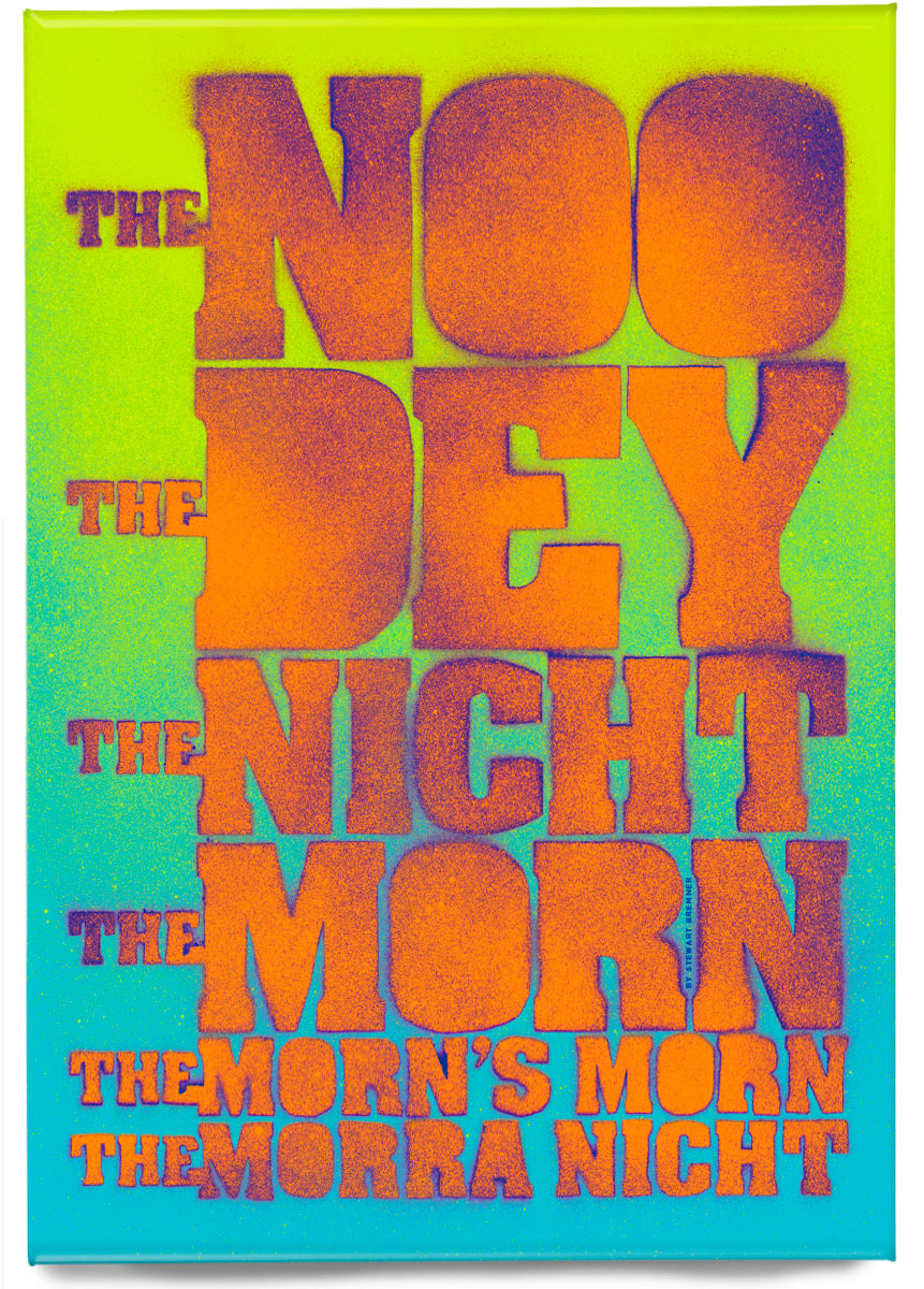 This piece was made using a hand-cut stencil and spray paints. Several of the resulting paintings were then scanned, combined and coloured, to produce this modern, street-art inspired design.