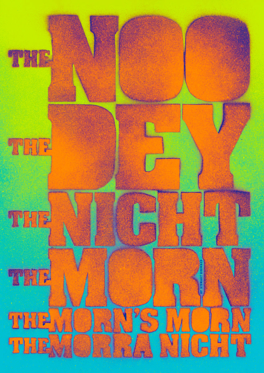 One of the notable feature of Scots language is how it is used to describe time. Whereas in English language uses 'today, tonight and tomorrow', in Scots those are 'the dey, the nicht an the morra.' Scots also gives 'now' the definite article: 'the noo.'