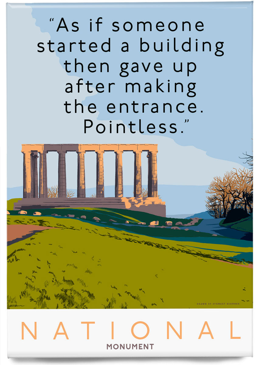 The National Monument of Scotland is a memorial to those who died fighting in the Napoleonic Wars. Modelled after the Parthenon in Athens, it was fittingly left unfinished in 1829 due to lack of funds.